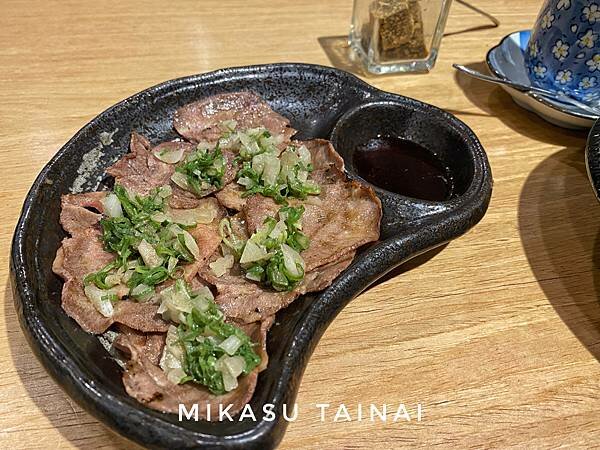 我的主餐的肉是牛舌,我覺得還可以接受啦!大概就是燒烤店點的蔥鹽牛舌,牛舌切的薄薄的、吃起來脆脆的,搭配蔥鹽壓過牛肉的腥味還滿好吃的~