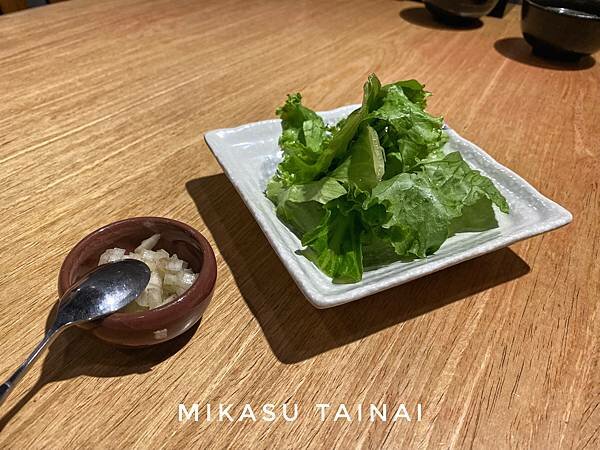 點餐的時候可以加選一次洋蔥,生菜、白飯、雞湯都可以無限續加,如果點丼飯的話可以續加牛肉肉燥飯,因為我們單點了牛肋條,就選了生菜跟洋蔥來搭配,生菜還滿新鮮的。