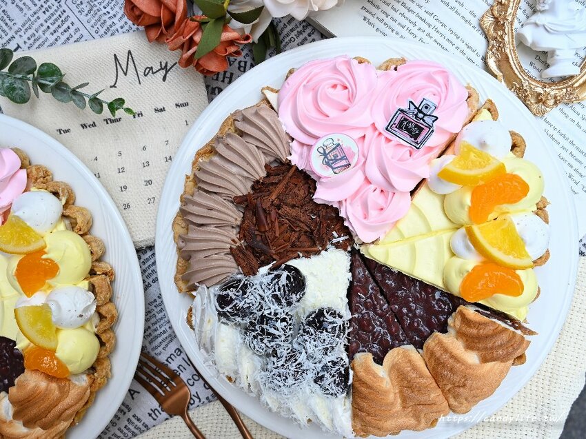 這次薔薇派母親節蛋糕,糖糖挑選了人氣經典美魔女套餐及今年新推出的公主蛋糕,美魔女套餐是薔薇派搭配好的綜合拼盤,一次可以吃到五種不同口味,今年的美魔女套餐口味包含招牌紅豆、夢幻紫芋、黑森林、真愛及伯爵香橙,其中的真愛及伯爵香橙是新推出的口味唷