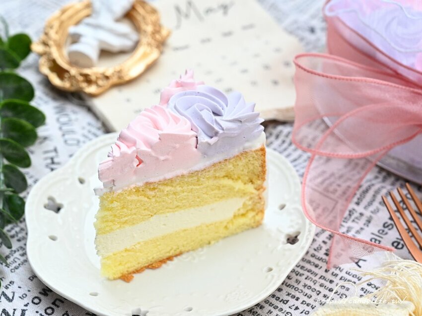 薔薇派除了甜派系列,這次母親節蛋糕還推出了這款超夢幻的公主蛋糕,這造型真的有夠浮誇,上頭擠上浪漫粉色及紫色的玫瑰擠花,綁上緞帶,像極了一束花,想要趁機跟媽媽來的愛的告白,送上這款公主蛋糕媽咪們絕對會感動落淚呀