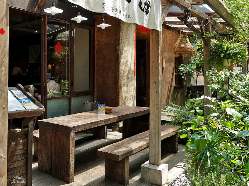 茶館餐廳座落於公寓大樓之下,刻畫出老宅古樸的氛圍融入其中,不彰顯卻令人想多看兩眼。