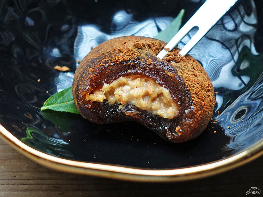 套餐的最後是今日茶點黑糖蕨餅。外層撒上黃豆粉,底下是軟Q軟Q的黑糖蕨餅包裹著花生餡,其中花生餡充滿花生顆粒增添口感,也讓花生香氣更加十足,替這份套餐做了完美的ending。