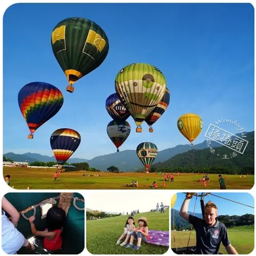 登記搭乘熱氣球的地方就在前面有一堆人那裏,大家正在聽主辦單位介紹注意事項,我們來的時候名額還有剩,但是比起一個人花費500元搭熱氣球在空中停留3分鐘,我比較喜歡在旁邊瘋狂拍照,然後把錢拿去吃東西~哈哈