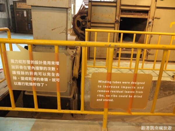 ▲欣賞屏東菸葉館內的歷史機具時,都會有中英文對照的介紹對話框,很清楚呢!