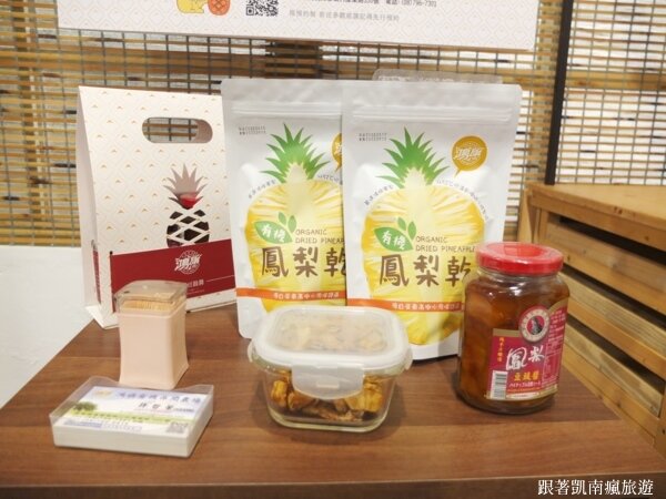 ▲鳳梨乾、鳳梨果醬、鳳梨豆瓣醬產自在地盛名的「鴻旗有機休閒農場」