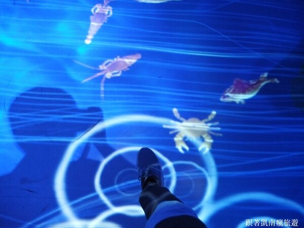 ▲互動科技能讓大小朋友玩得不亦樂乎,腳下泛起漣漪,彷彿正踏在水面上呢!