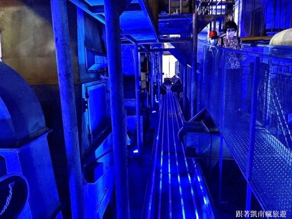 ▲走上樓梯,隨著各種燈光營造,細細探索這些保存完善的菸葉加工機具