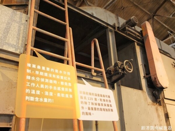 如除沙滾筒機、菸骨乾燥機、菸葉複薰機...等等,這裡可見許多菸葉加工設備