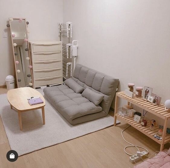 再來就是那種看來多餘卻不可缺少的東西。在小小的雙人沙發上,再加上1~2件毯子,可以是拼布材質的,也可以是布桌巾的觸感,看起來雖然繁雜,但放上沙發後,這樣小東西卻讓韓系感大爆發,切記,這裡面絕對不包括浴巾質感的織物。