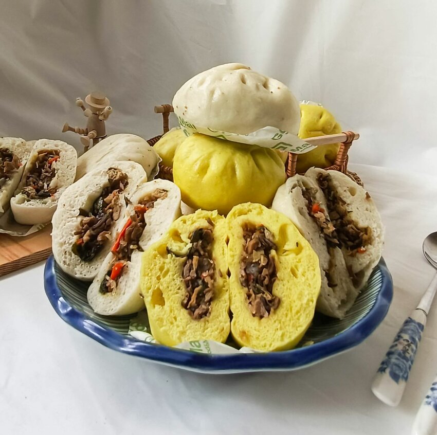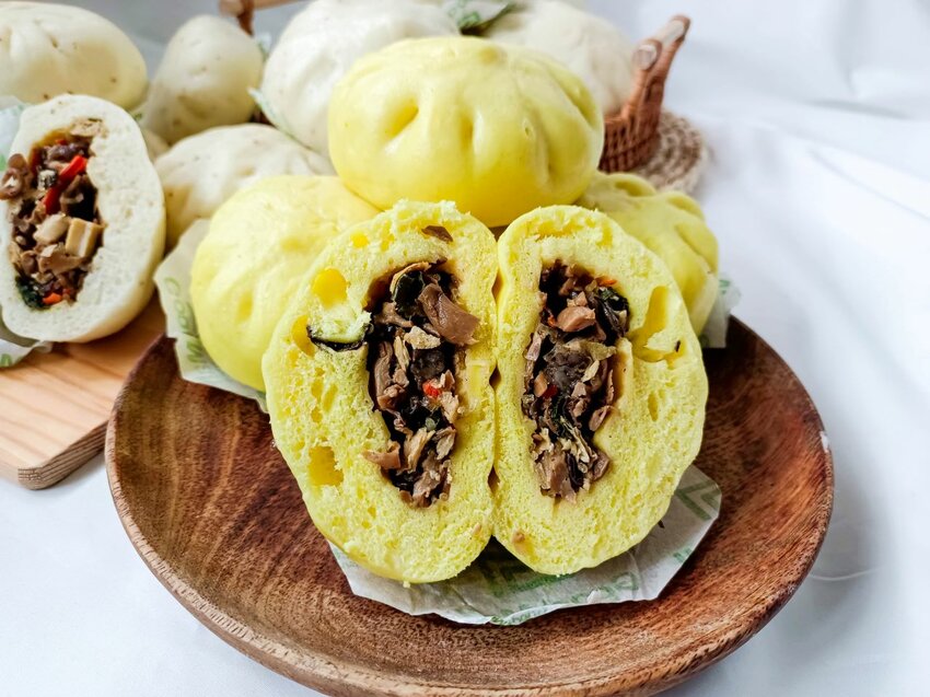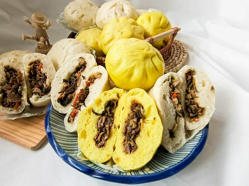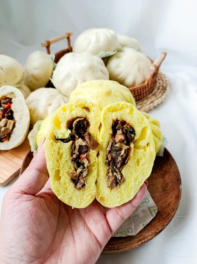 黃色的包子皮就是薑黃鮮蔬包啦~