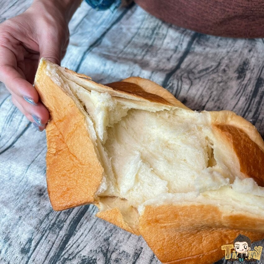 生吐司就是撕開才可以保持麵包的紋路,咬下特別的軟綿,水份的保存非常的充足,不會乾又有特別的口感,搭配艾許奶油的香氣,單吃就很美味,不需要加任何食材。