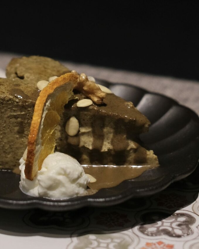 ▼蛋糕的尺寸不大蠻小塊的,口感質地綿密,中間是半熟的流心內餡!