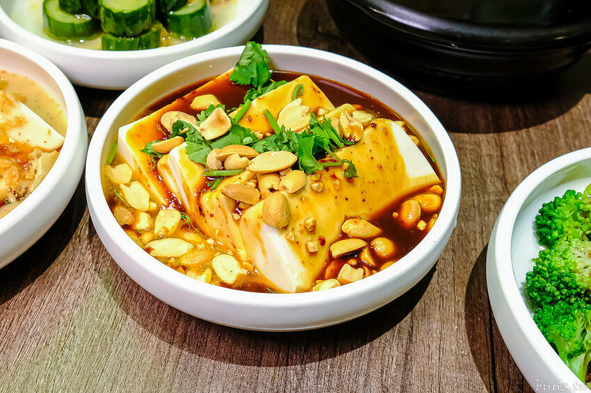店內這款川姥嫩豆腐也是人氣小菜,使用中華嫩豆腐,淋上獨家調製的川姥醬,最後撒上香菜跟花生米。