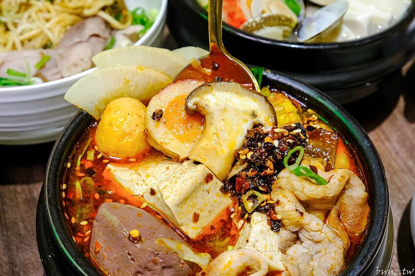 鍋物內的配料大致上都一致,像有剛剛沒拍到的甜不辣、魚卵捲,不想吃豬肉就挑選蛤蠣為主的鍋物,相當很受女生青睞。