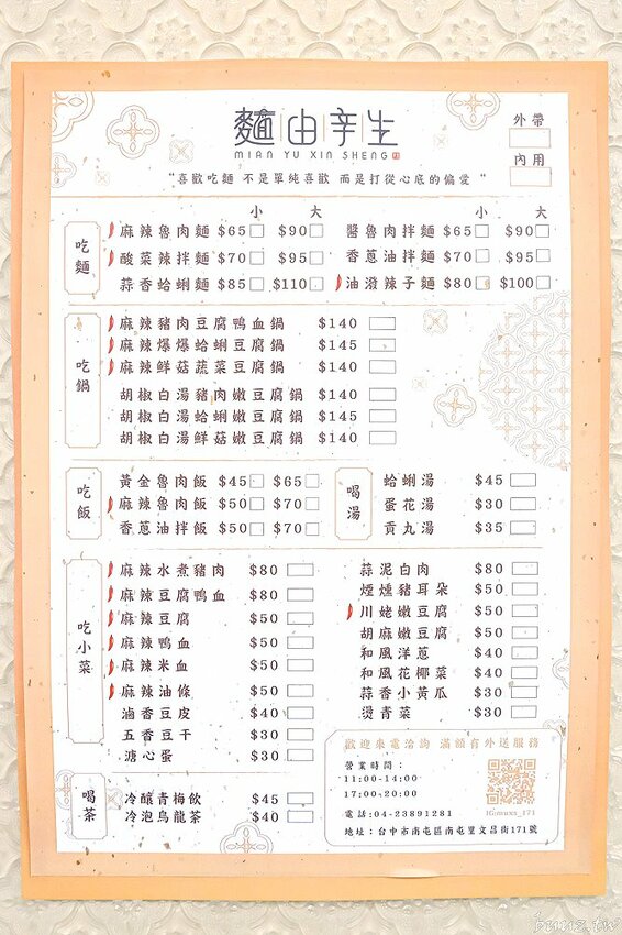 麵由辛生,文青風麵食館,鄰近南屯老街、萬和宮
