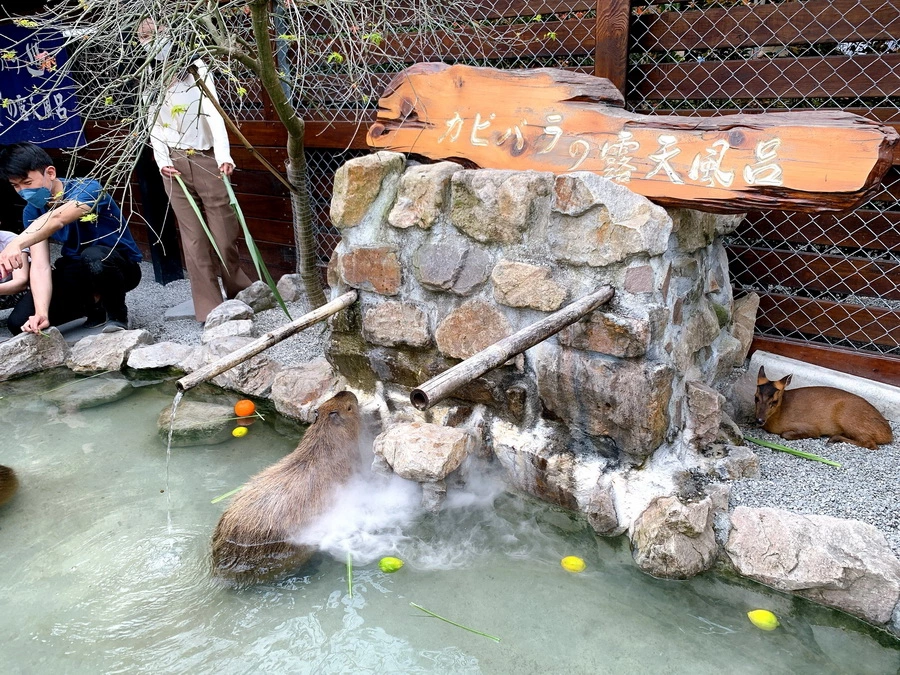 終於到第一排了也太可愛了吧,水豚泡露天溫泉耶,好想一起泡啦(誤)