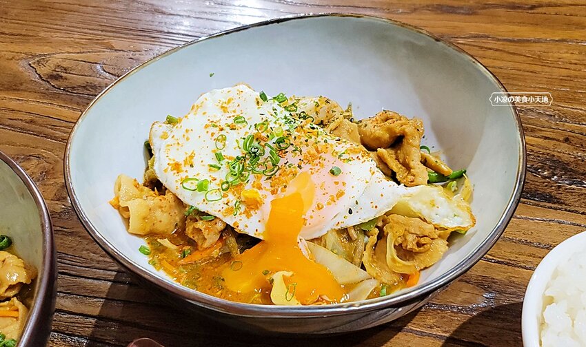一看就是一道很下飯的主食啊!! 還有一顆邪惡的太陽蛋,高麗菜、紅蘿蔔、豬肉片、剝皮辣椒、青龍等拌炒,鹹香的味道引人肚皮咕嚕咕嚕叫阿~~