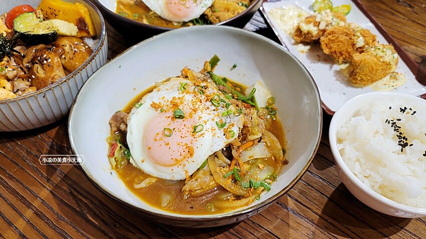 其實太陽蛋應該要放在白飯上再戳破,並且淋上些許醬汁、讓香Q的米飯跟蛋黃交融吃起來更鹹香美味!