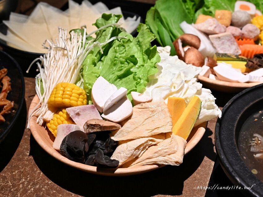 另外這一區是蔬菜、火鍋料自助吧區,超過20種食材,這裡的蔬菜都是採用小農每日新鮮直送的鮮蔬,選擇性多樣化,想吃什麼自己夾,想吃多少就吃多少,是不是比一般只單純附上一盤菜盤的鍋物還要讚呀