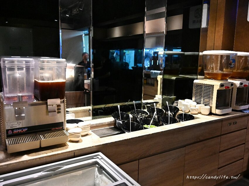 這邊是自助吧區,醬料、飲品、日本明治冰淇淋通通在這裡,冰淇淋每天會供應六種口味任你吃到飽