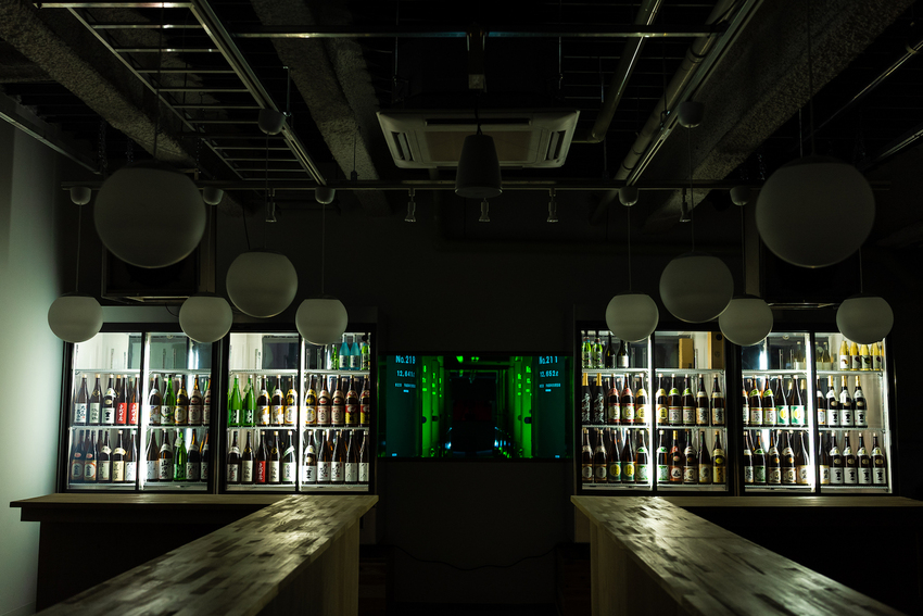 常深大輔以「神社」為意象打造,入口處裝飾著常見於懸掛在日本神社的注連繩,步入店內映入眼簾的是全長50m的世界最大級木製「U字形吧台」,吧檯盡頭的展示櫃展示著26家酒藏的銘酒,最後面是兩列並排的貯酒槽,以五顏六色的燈光隨機照明,打造出既神秘又夢幻的空間。敬神儀式後領受日本酒來喝是在日本自古以來的習俗,此處便是以向習俗致敬的設計理念,打造的愜意品酒環境。U字型吧檯正在申請金氏世界紀錄中,通過後想必會再掀起一波話題吧!