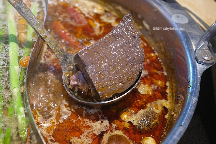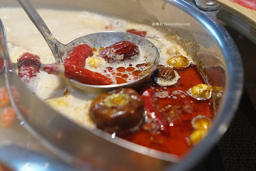 隨著熱水愈滾,牛奶的香氣愈發鮮明,表層都不斷冒起泡泡,喝了一口湯,不是我在說,這鍋真心建議給平常有吃辣的朋友,因為它的後勁還挺強的,但牛奶的醇厚又讓人欲罷不能,真的是很過份。