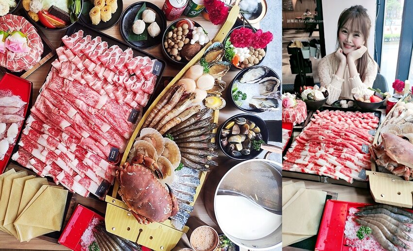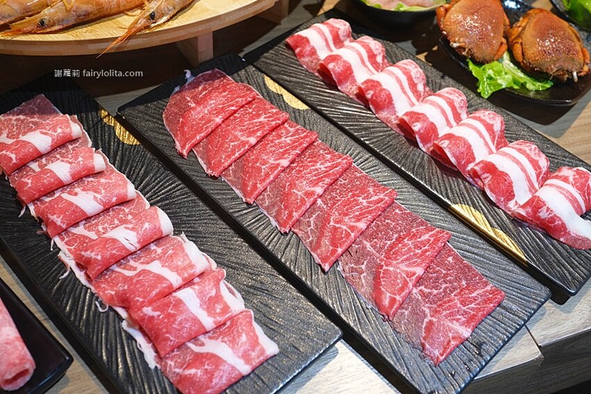 老饕首選的肉品區當然是這裡的明星商品,包括四種頂級肉品及四種頂級海鮮,澳洲M9和牛、美國頂級雪花牛、美國頂級翼阪牛、台灣頂級松阪豬,而海鮮部份則有汶萊藍鑽蝦、干貝、旭蟹及三點蟹,通通都是讓你無限吃到飽。