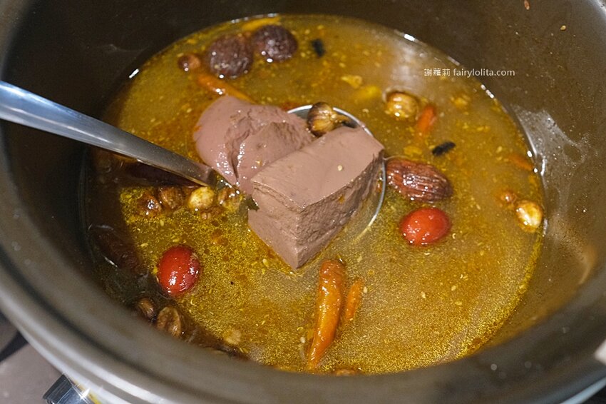 一撈起來,裡面都是熬煮的中藥材,都還沒吃,光是我在拍照都可以聞到它不飄來的香氣,真的是超逼人的。