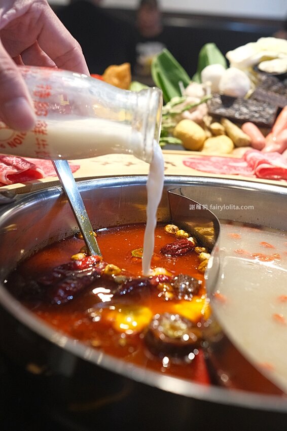 倒進牛奶,天香麻奶鍋就完成了,如果要我形容,我倒覺得它就是麻辣牛奶鍋,一口氣就可以品嚐到麻辣的香及牛奶的醇厚。