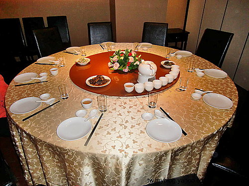 先預定了包廂 , 金色的桌巾有華麗的感覺~