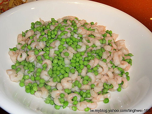 店家宣稱 - 色澤青翠油亮的豌豆河蝦仁,用的是1斤7、800元的甜豆嫩豆仁;