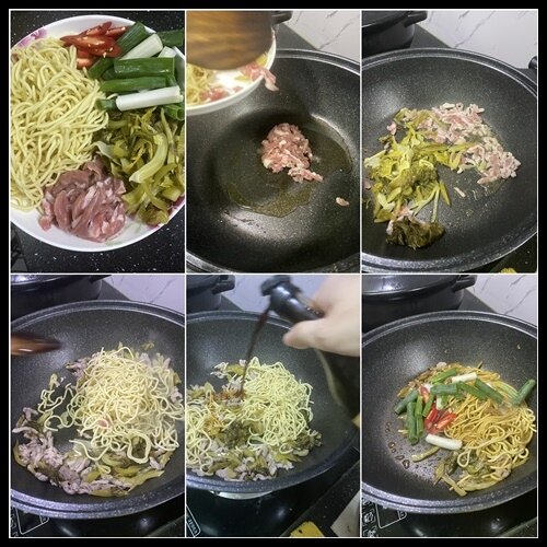 再來一道我從一個客家朋友學到的酸菜肉絲炒麵