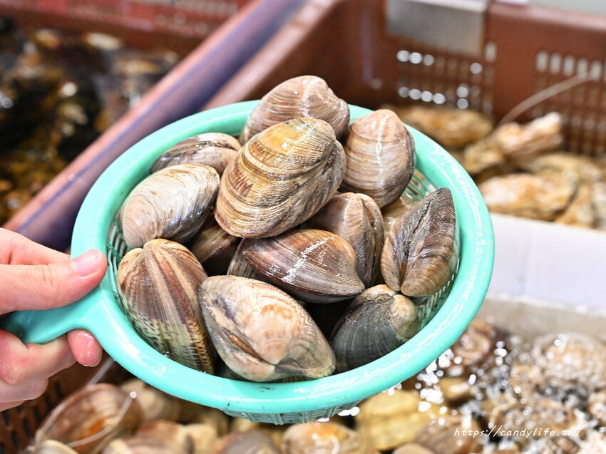 這邊是活體海鮮區,新鮮蛤蜊、牛奶貝、生蠔、淡菜通通有