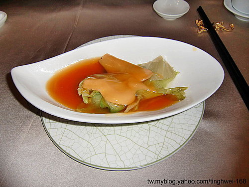 沒想到這一道菜也是與蒸鮑魚味道相似的醬油醬汁口味.....