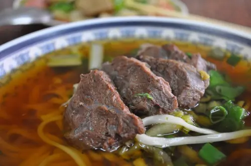 牛肉麵口味選擇多元有分紅燒、麻辣、茄汁及清燉四種湯頭,可搭配半筋半肉麵、半肚半肉麵、滿漢牛肉麵等不同牛肉部位,將牛肉麵分得更加精細,不同於一般坊間麵食店只有單純兩三款牛肉麵。