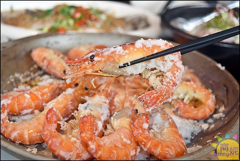 活蝦料理新鮮現撈,蝦肉結實Q彈、蝦頭滿滿蝦膏,鹽焗蝦鹹香帶甜的滋味超好吃!