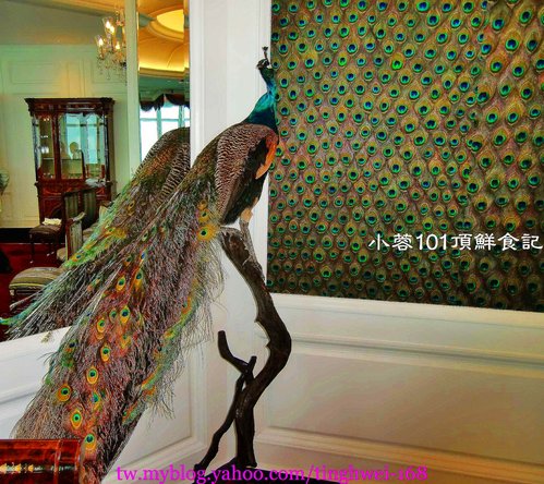 走廊上掛放了許多幅以各種「鳥禽類羽毛」製成的精美畫作