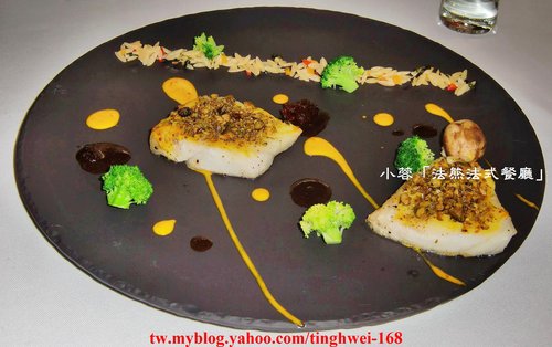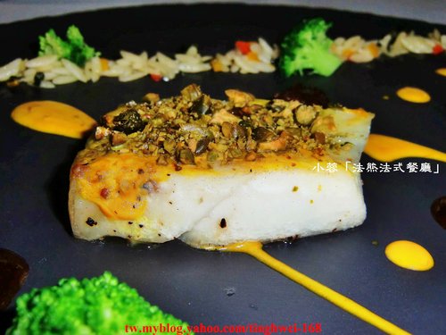 小蘭的「法國羊肚覃開心果嫩煎鱈魚蕃紅花醬」主菜