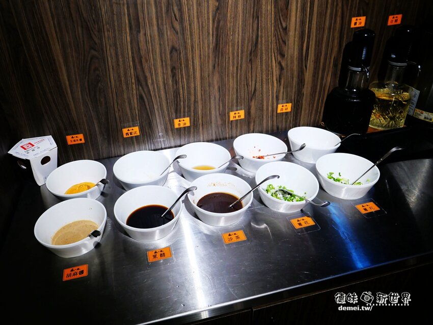 香油、辣椒、蒜碎、胡麻醬、黑醋、沙茶、蔥花、醬油、白醋。