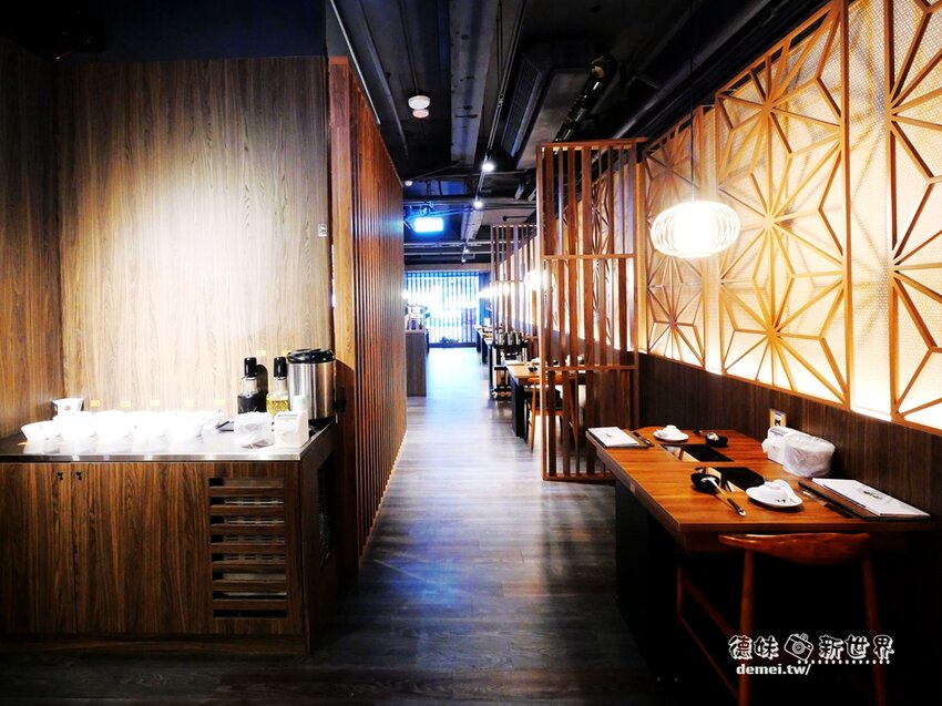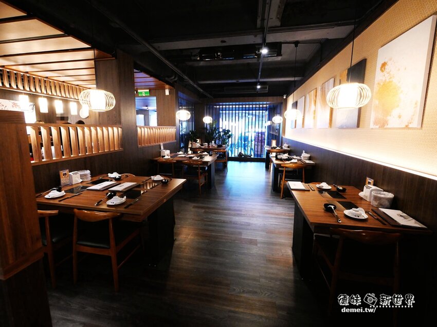 店門口低調高質感頗具日式庭院風格,室內環境寬敞舒適,暈黃竹製光罩添氛圍。