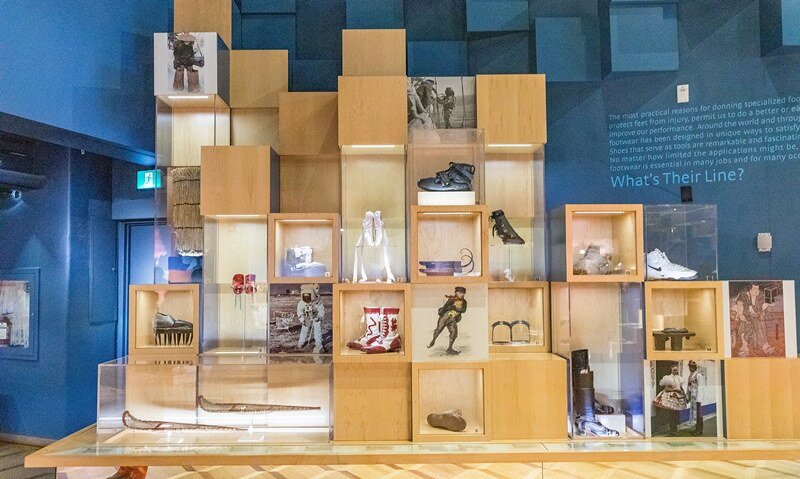 巴塔鞋博物館 Bata Shoe Museum共有5層樓四個展廳,其中常展廳的常設展出是「關於子的一切,各個年代的鞋類」最值得一賞。展示公元前2400年至今各國具歷史意義的鞋子,還有一些名人明星,如黛安娜王妃、瑪麗蓮夢露、貓王、艾爾頓強,還有瑞士球王費德勒穿過的戰鞋等收藏。