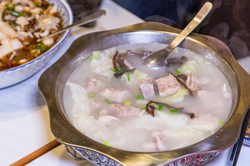 藏書據說是姑蘇城外的一個地名,便以此為名,這裡的羊肉料理除了羊肉湯外,也賣烤羊肉串、羊肩肉所以也歸類為新疆料理,另外也有四川等地的料理。門口掛著許多媒體採訪的照片和各特色料理的簡單說明,不知怎點菜就照著這些招牌吃準沒錯。