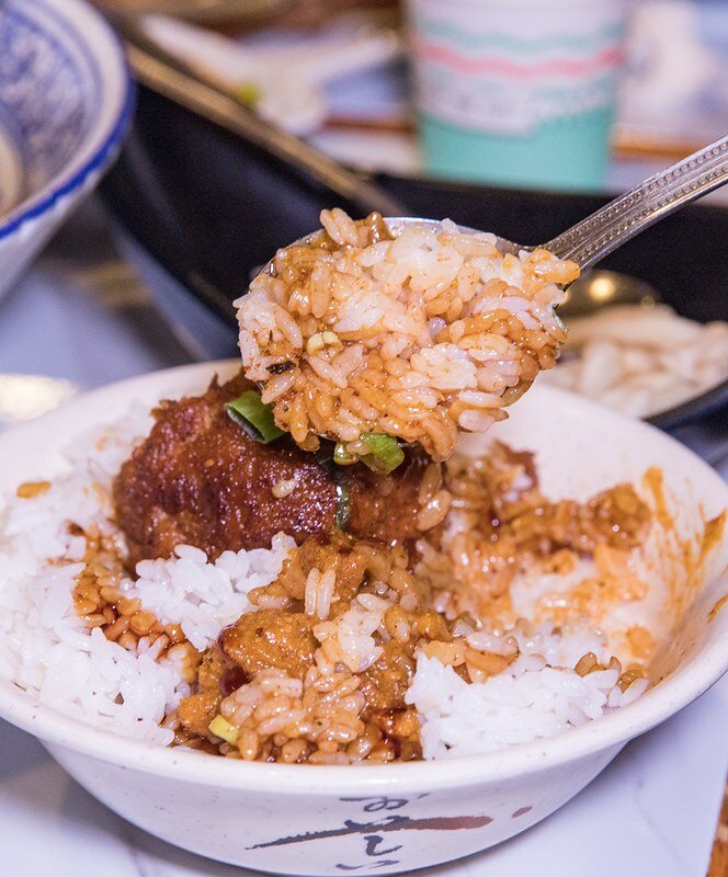 羊油拌飯本來我不打算點,因為吃了太多的褲帶麵,但個友人點了一碗感覺很厲害,於是嘴纏也跟著叫了一碗,再把獅子頭放上去,一整個畫面大大UP。