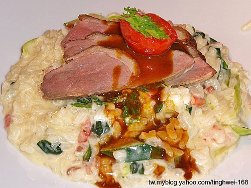 爸爸點的主餐 - 奶油培根菠菜燉飯襯香煎鴨胸佐馬沙拉醬汁