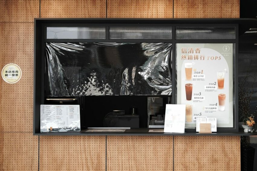 ▼【信清香】以品牌墨綠色及木質設計,加上融合山、雲、茶葉元素的LOGO,還有整面質感的茶葉罐牆面,能讓人充分感受到對於茶的堅持。