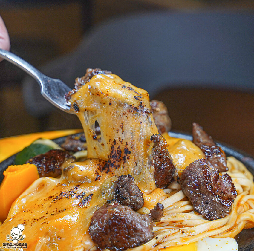 軟嫩好吃的骰子牛,疊上邪惡的起司岩漿,整個會多出乳香、鹹香起司滋味好療癒