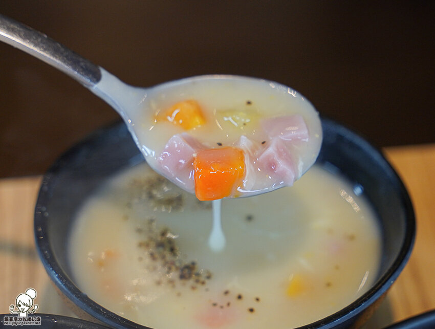 帶稠度的香濃玉米濃湯,孩子的愛,可以撒上黑胡椒提味~