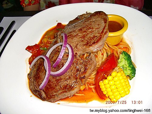 同學點的牛排義大利麵 牛排味道OK但是有點澀...