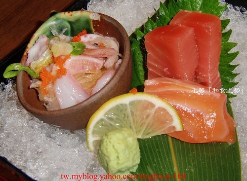 生魚片是南方黑鮪和挪威鮭魚,份量不多但鮮度還OK~