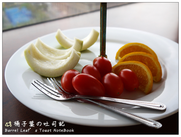 最下層是水果,有芭樂、小蕃茄還有柳橙,吃來就普通摟~!柳橙還滿多汁的,嘿嘿~:P